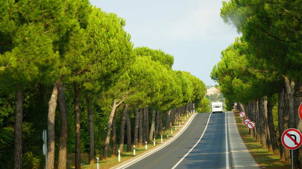 크로아티아의 로비니 가는 길의 소나무 가로수