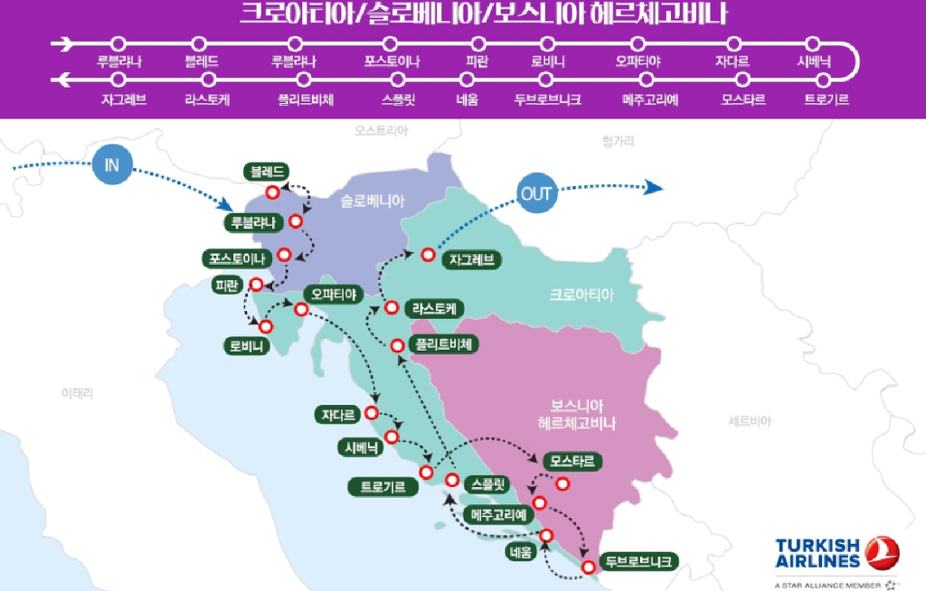 →보스니아 모스타르→메주고리에→크로아티아 두브로니크→네움→스플릿→플리트비체