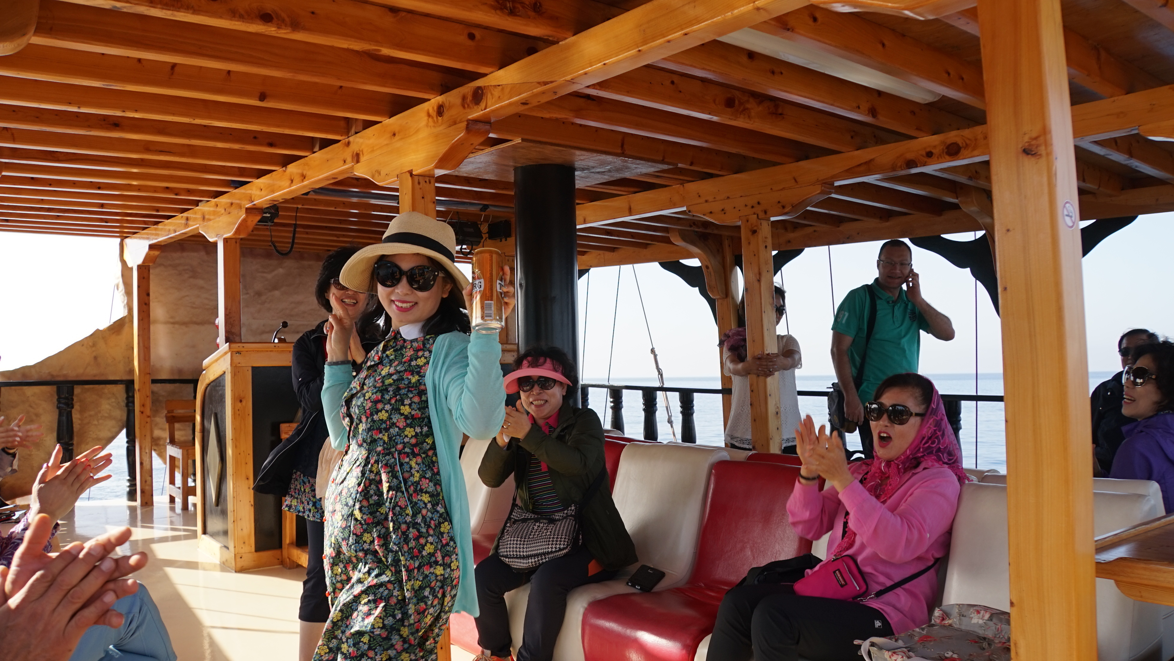 유람선에서 내나이가 어때서 등 신나는 트롯트를 틀어주고....