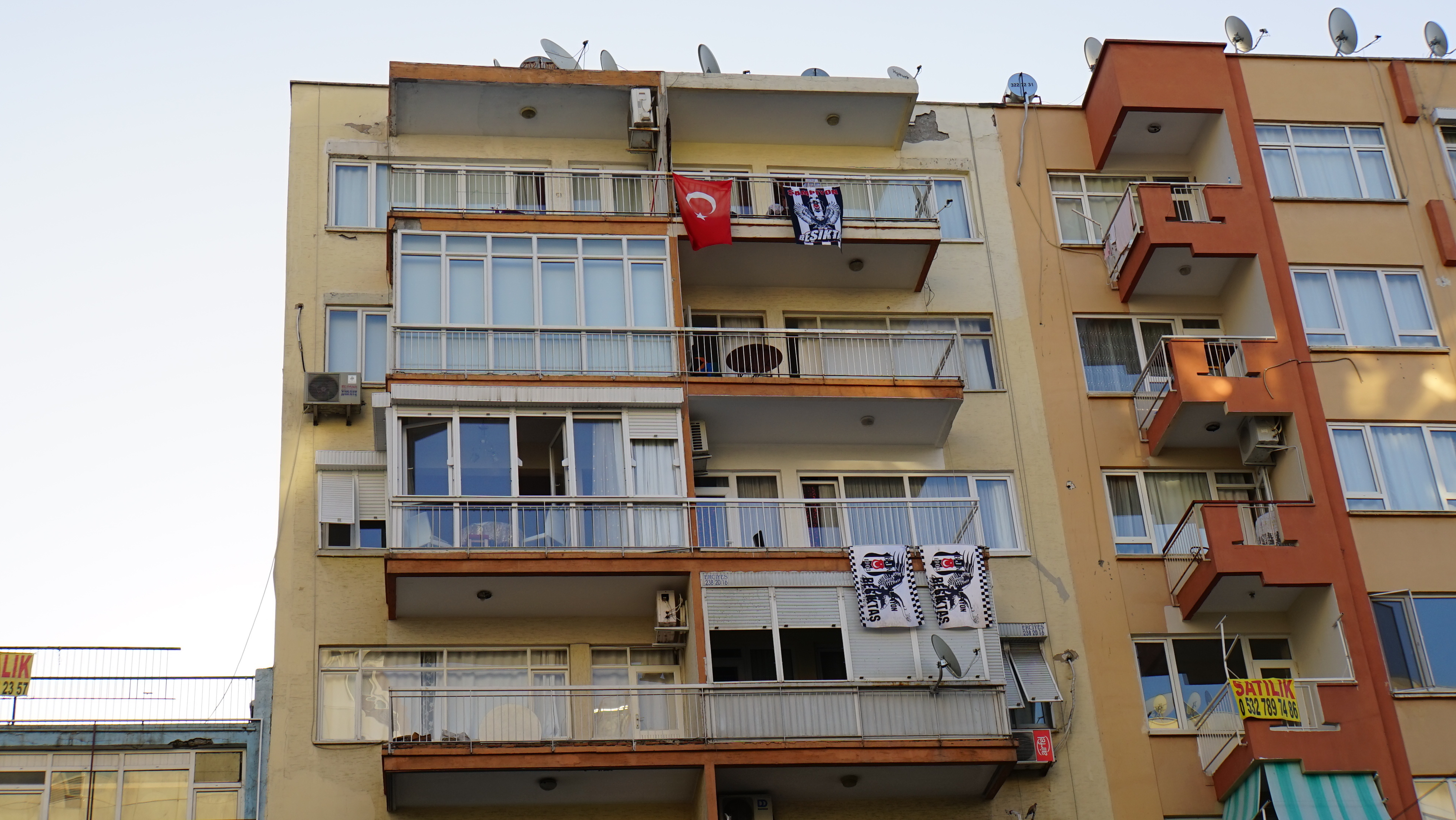아파트 창문에 걸려 있는 깃발은 자신들이 좋아하는 축구구단의 깃발이라고 한다....이곳도 열혈 팬들이 많다고 베식타스 펜인