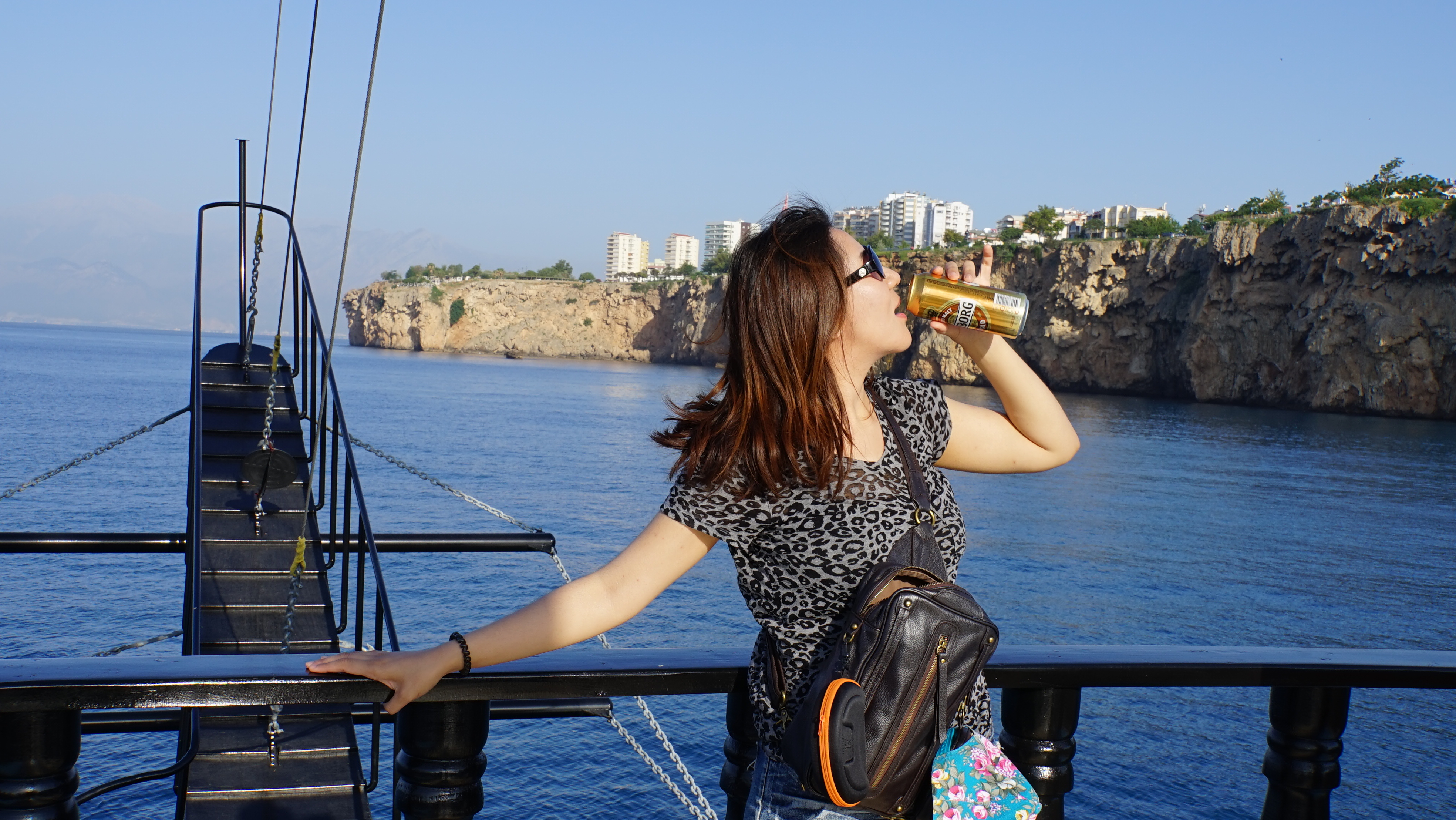 배에서 맥주나 음료수를 한 캔씩 주는데...화보흉내를 내본다.