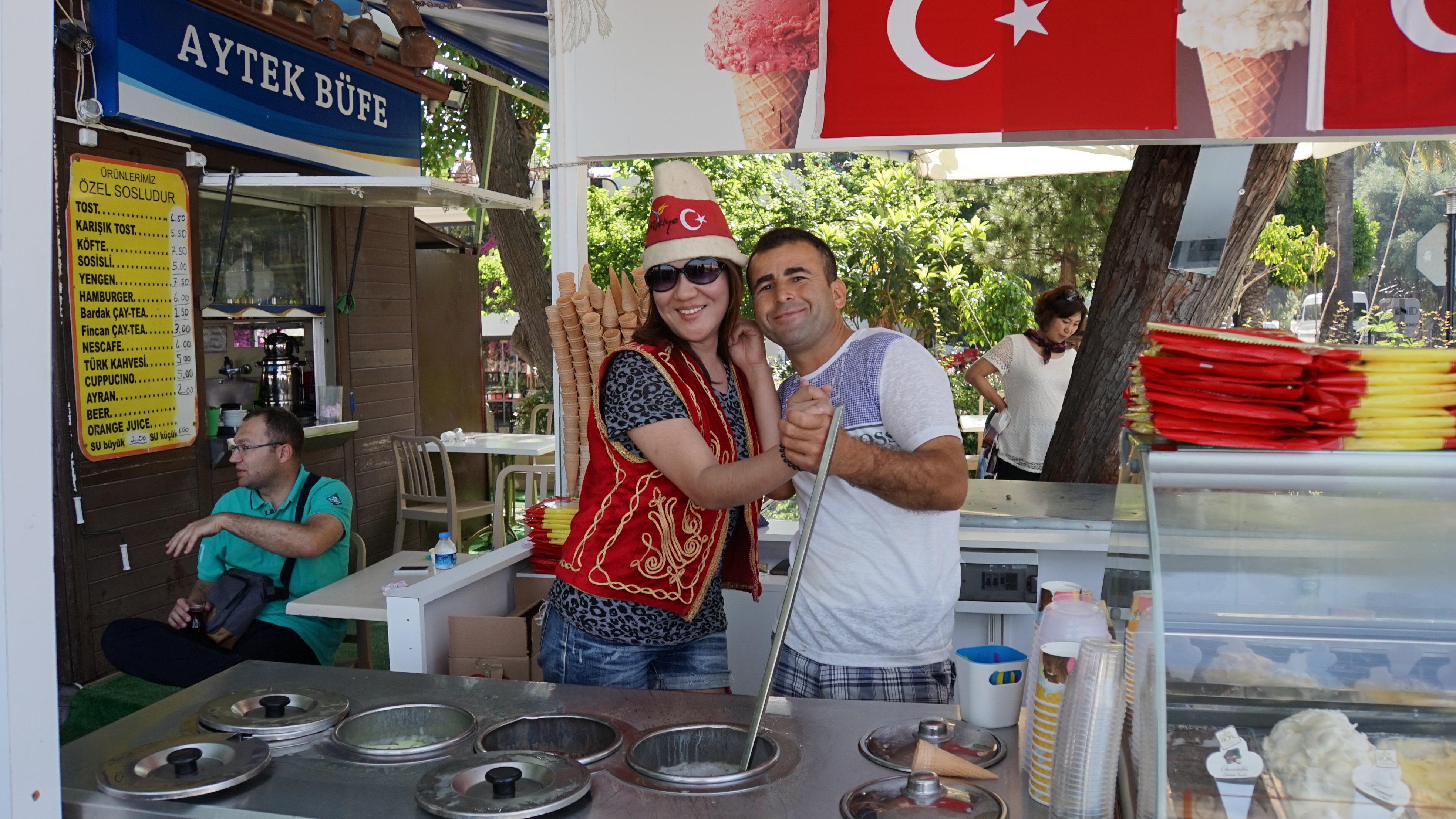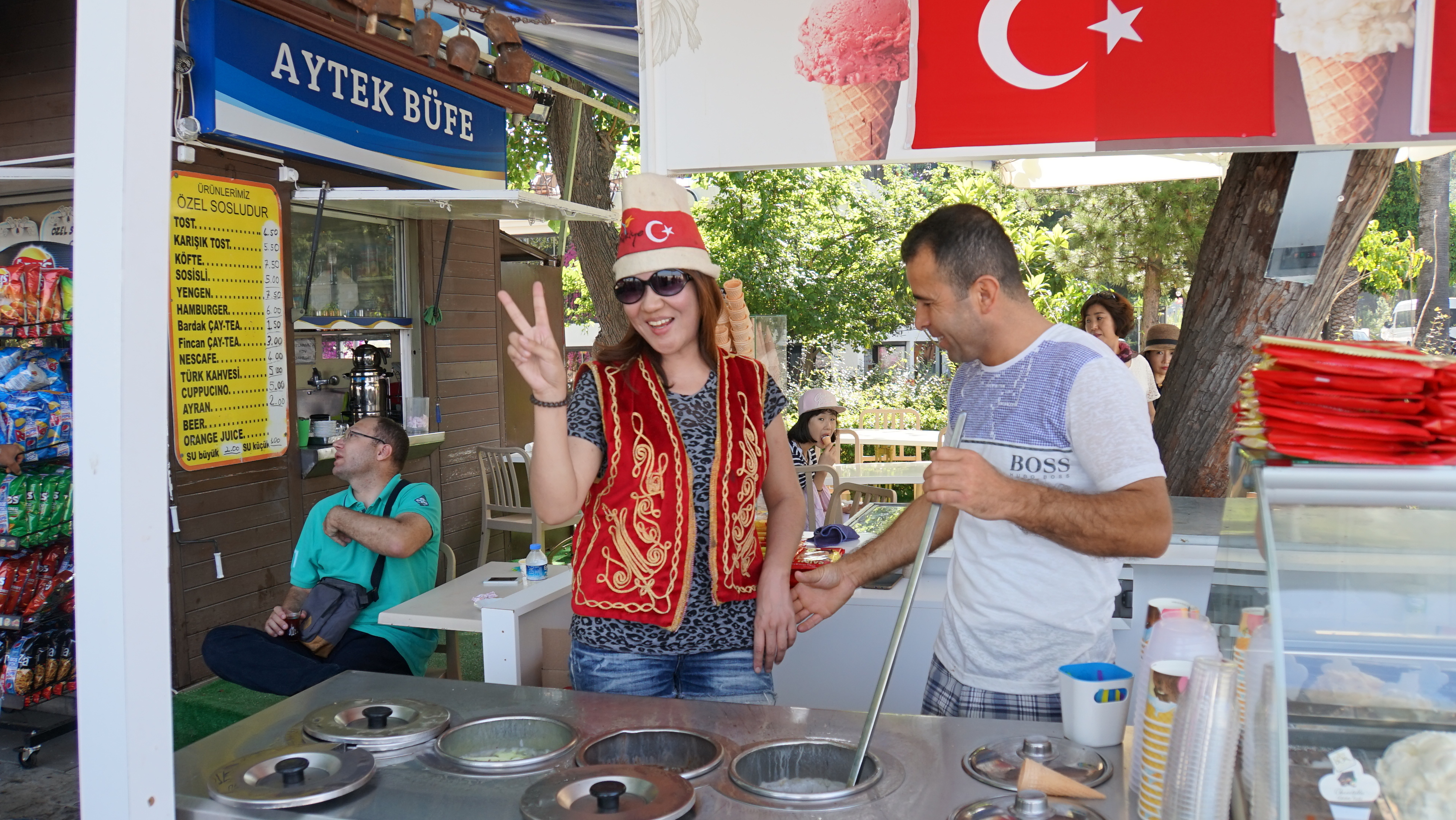 우측에 아이스크림 가게에 일행들이...