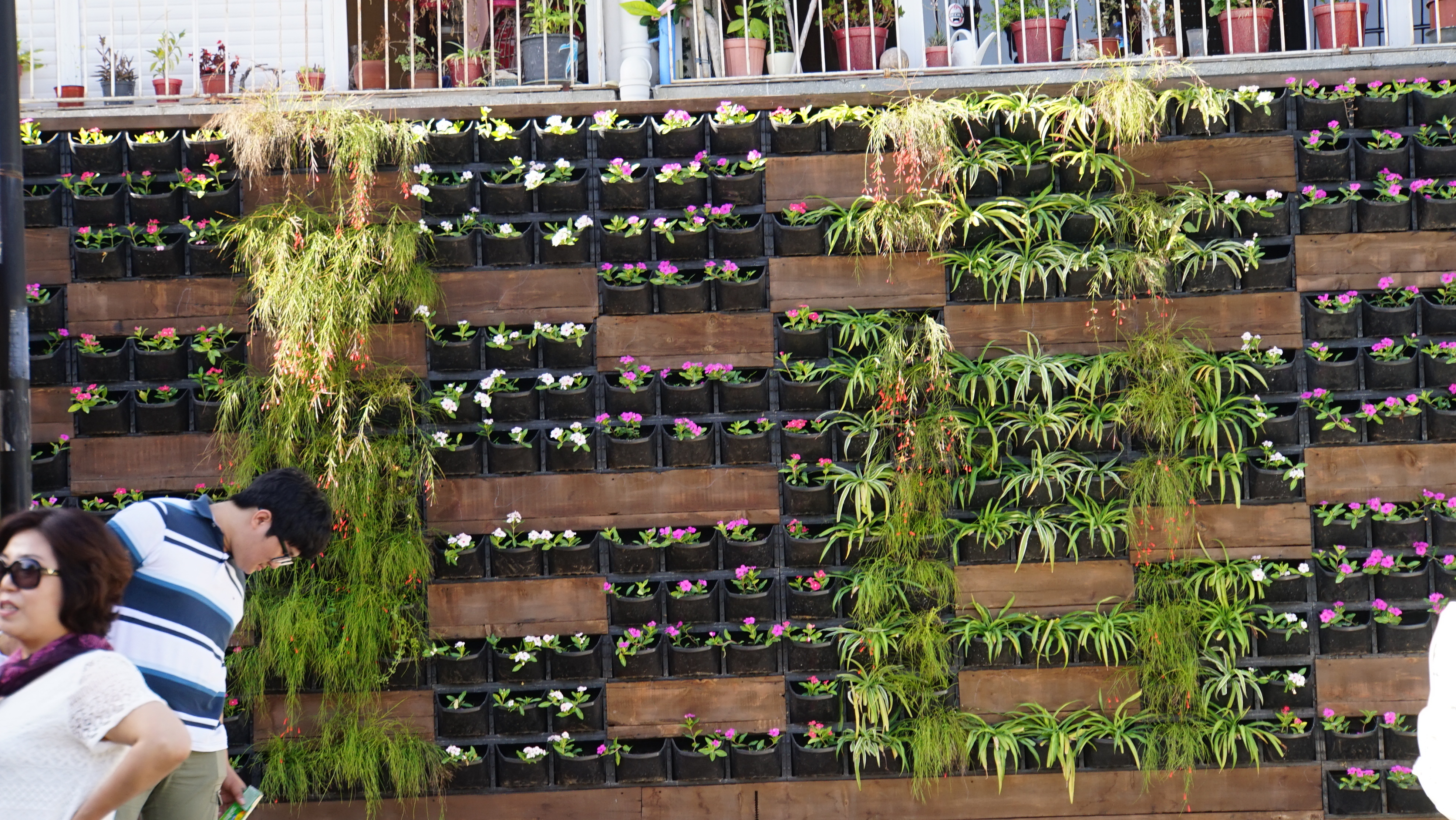 골목의 벽을 꽃으로 예쁘게 꾸며 놓았다.