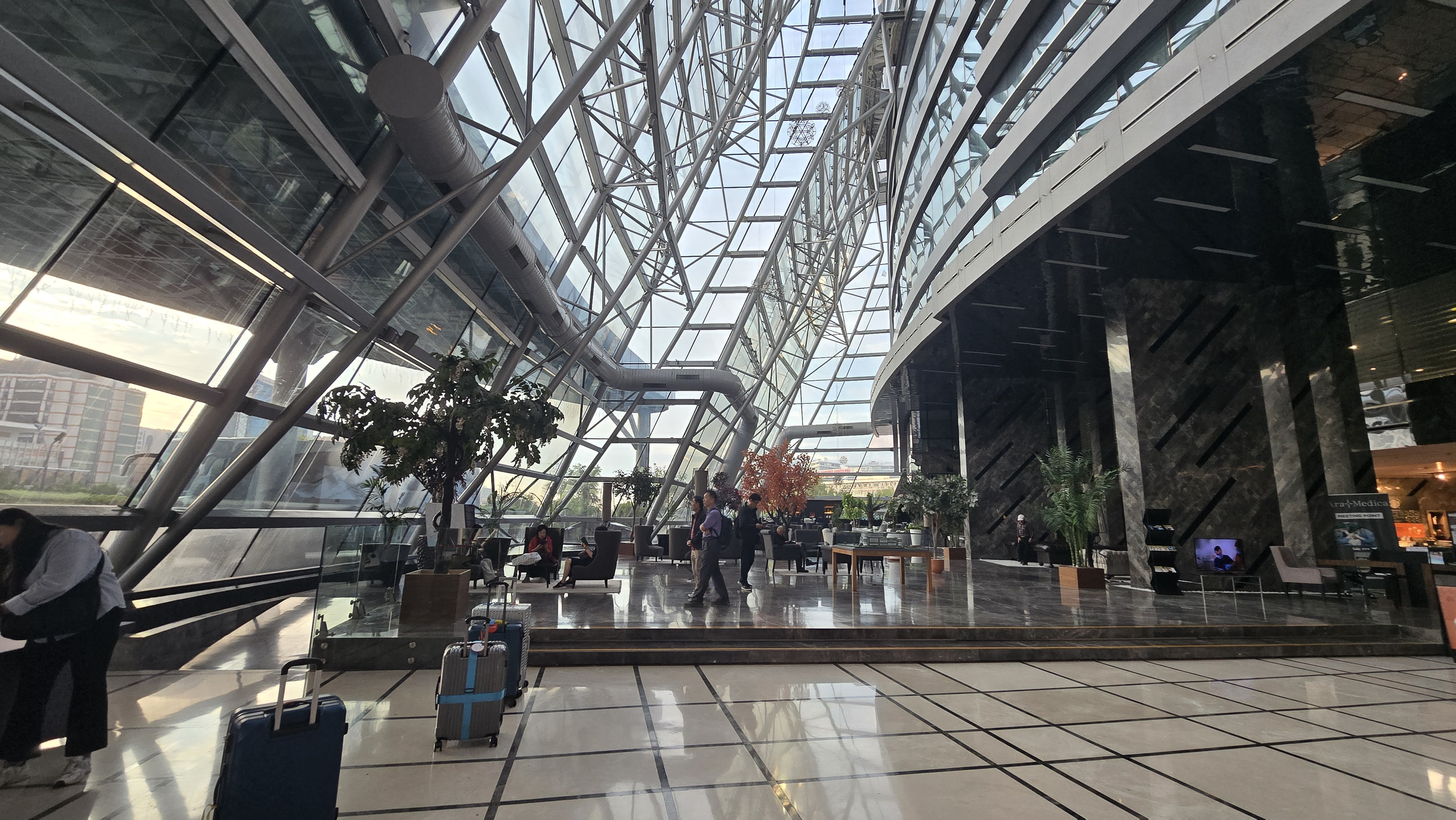 로비로 트렁크를 가져다 놓고..이곳은 머큐리 호텔과 풀먼 호텔이 같이 쓰는 로비