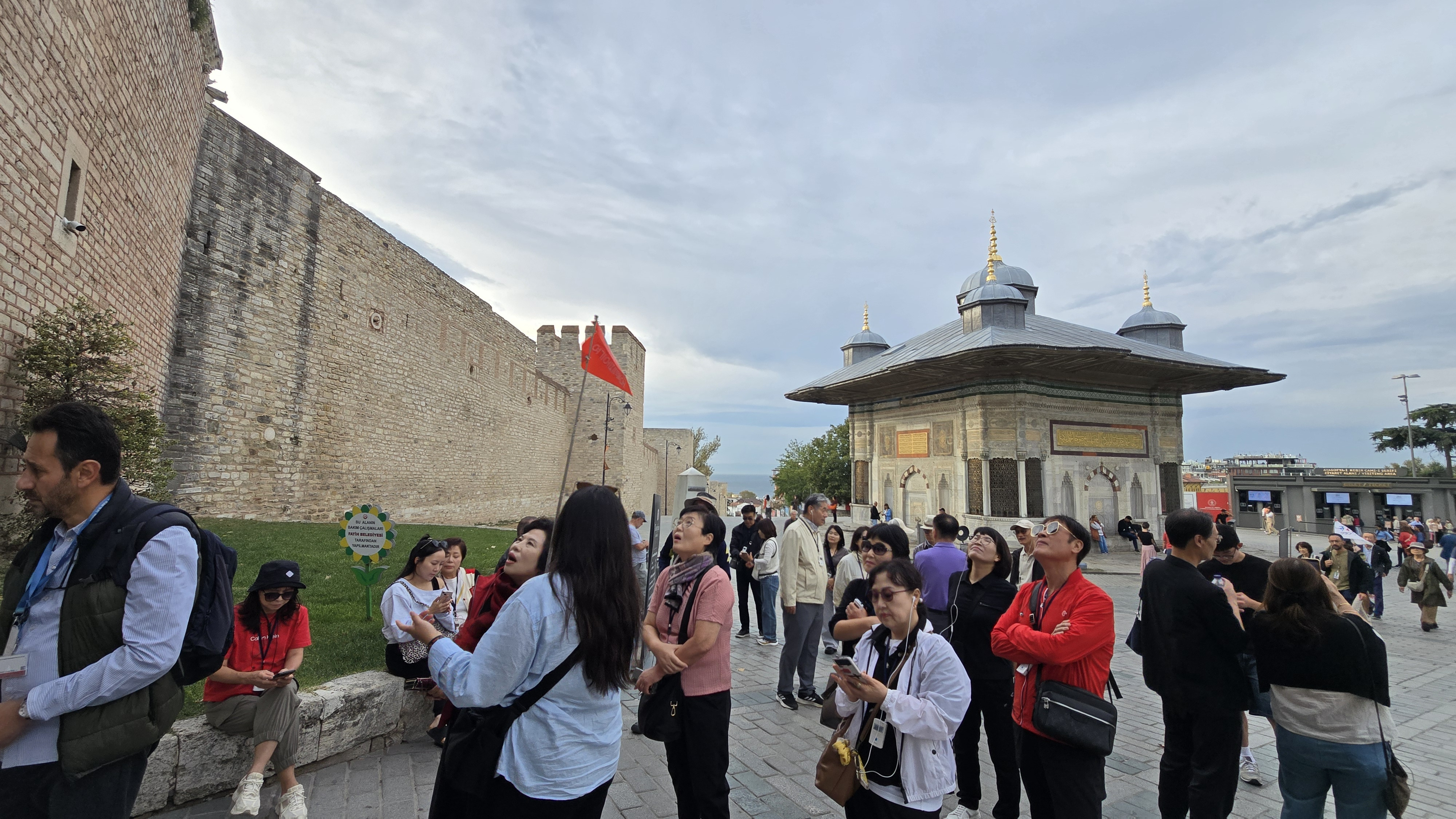술탄 아흐메트 3세 분수 앞에서 주의사상을 듣고..